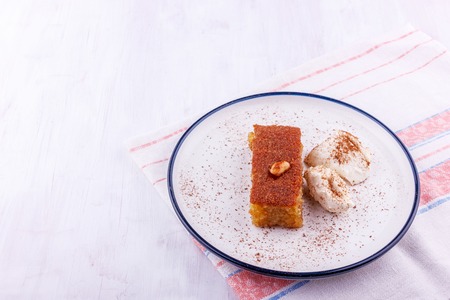 Traditional Turkish dessert - sambali, sambaba or damascus with cream and with cinnamon powder