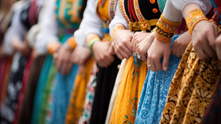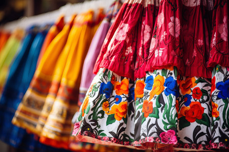 Intricate Mexican colorful skirt closeup. Latin culture. Generate Ai