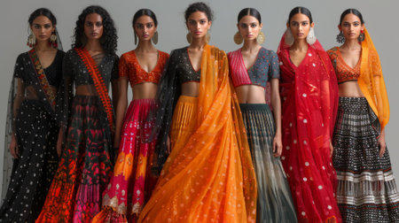 Diwali Festival in India. women in fashion collection of traditional Indian attire inspired by the vibrant colors, intricate patterns, and cultural symbolism of Diwali.