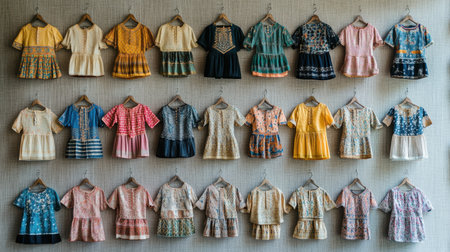 A stunning array of colorful traditional dresses showcased from the back, highlighting vibrant patterns and unique styles. Perfect for celebrating cultural heritage.