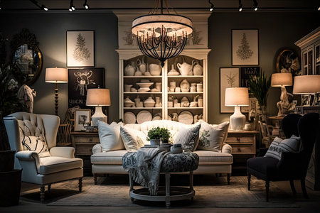 home decor shop with variety of furniture, lighting, and other accessories to choose from, created with generative ai
