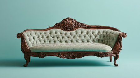 A beautifully crafted vintage sofa featuring a tufted design and ornate wooden frame, ideal for enhancing the charm of any classic or elegant living space.