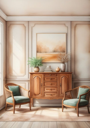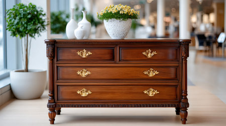 Furniture chest of drawers showcasing classic design and elegant decoration in an interior setting