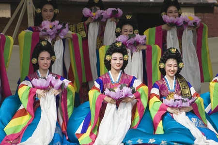 London, UK - August 15, 2009: Korean ethnic dancers perform, Taepyeongmu, dance to wish great peace, in the Korean Festival on August 15, 2009 in London, UK.