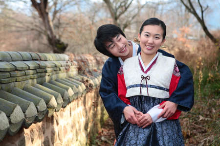 Male and female in Korean traditional clothes Hanbok 170