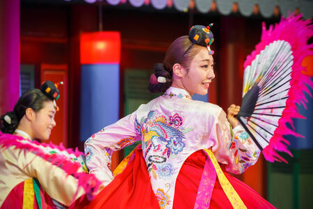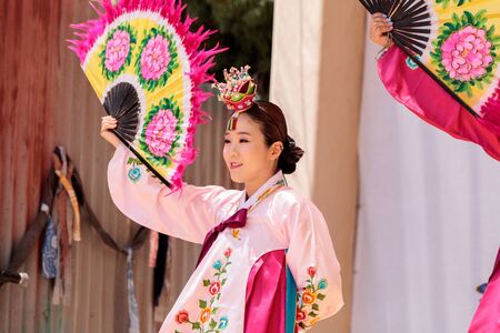 San Diego, CA, USA – July 1, 2017: Korean fan dance performed at the San Diego Zoo Safari park. Editorial only.
