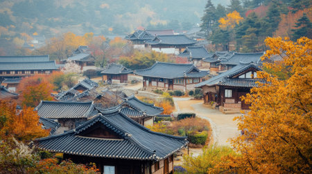 Traditional korean village with old architecture and houses at autumn in South Korea