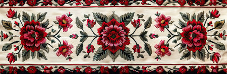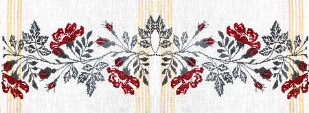 Ukrainian folk embroidery. Traditional folk ornament with red flowers.