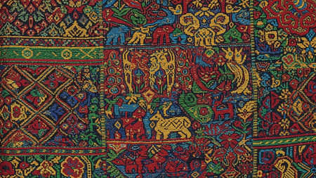 Explore the beauty of a vibrant traditional fabric featuring intricate patterns and rich colors. Perfect for art, fashion, and decor inspiration or showcasing craftsmanship.