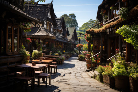 Ethnic Square in Gramado charming cultural houses., generative AI