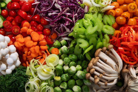 A stunning arrangement of fresh organic vegetables showcasing vibrant colors and textures. Perfect for promoting healthy eating and culinary creativity.