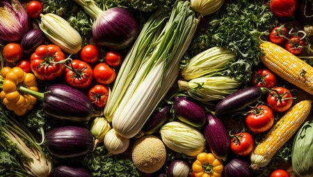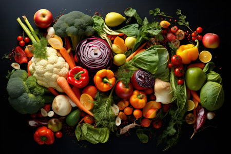 Abundance of vibrant vegetables and fruits creating a healthy and appetizing backdrop