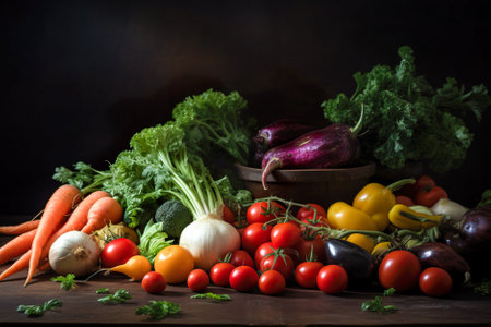 A variety of vegetables are arranged on a table. Generative AI image.
