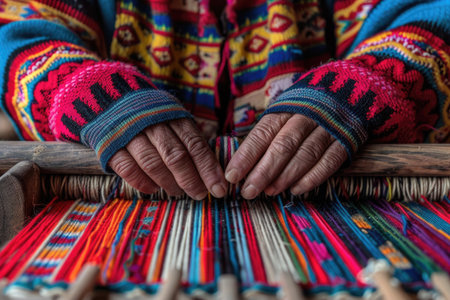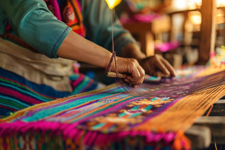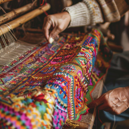 Close-up of artisan creating handmade textile with meticulous care, showcasing cultural heritage and craftsmanship