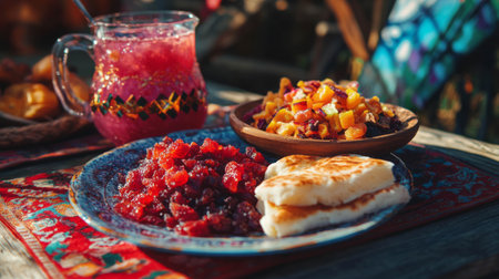 Traditional ukrainian cuisine close-up with uzvar and vibrant dish for festive gatherings