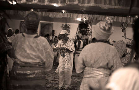 simoes filho, bahia / brazil - february 27, 2016: Candoble supporters are seen during celebration in religious temple in the city of Simes Filho.