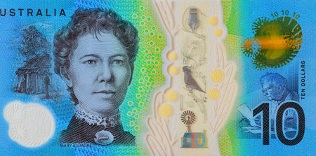 Australian dollar, is composed of polymer banknotes cash bills issued by National Bank of Australia