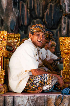 Bali - Indonesia - 10.22.2015: Friendly indonesian men dressed in traditional clothes with a big smile