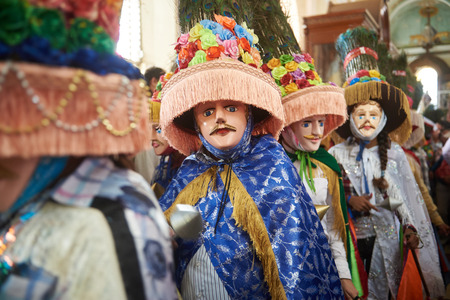 Diriamba, Nicaragua - January 4, 2017:people in big colorful mask dancing national dance in Nicaragua
