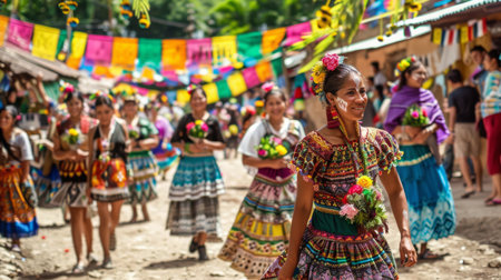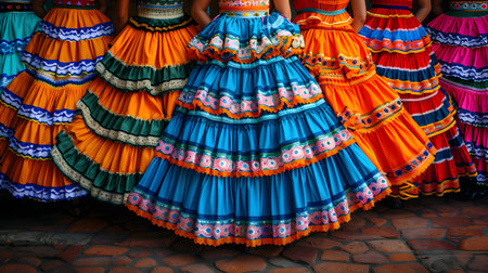 Traditional Mexican Festival: Female Dancers in Vibrant Skirts. Concept Mexican Culture, Traditional Attire, Folk Dances, Vibrant Colors, Female Performers