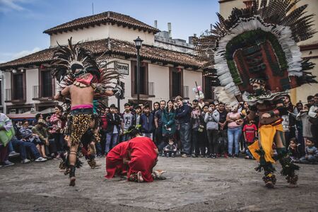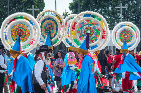 San Cristobal de las Casas, Chiapas / Mexico - 21/07/2019: ( Detail of traditional prehispanic dance in the streets of San Cristobal de las Casas Mexico )