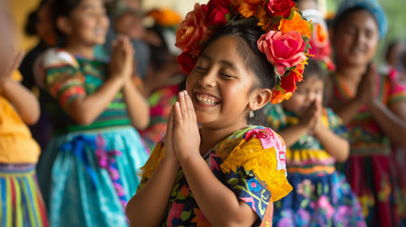 Capture the vibrant spirit of Hispanic culture with these captivating images of children dressed in traditional costumes From colorful dresses and embroidered shirts to vibrant headwear and accessories, these outfits showcase the rich heritage and festive traditions of Hispanic communities Perfect for celebrations, parades, and special events AI Generative