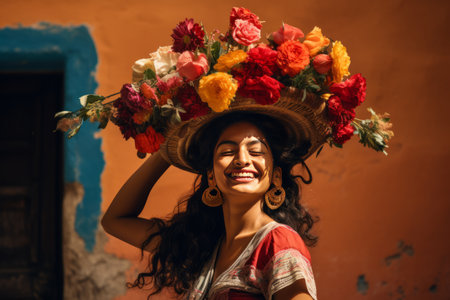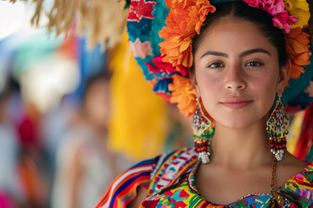 A vibrant Mexican woman adorned in traditional attire, embodying the vivacious spirit and rich traditions that characterize Mexican culture. AI generated.