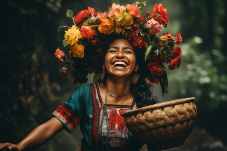 Fiesta Flamenco: The Mesmerizing Mexican Woman with a Flower Basket on Her Head