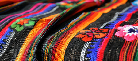 A stunning close-up of a handcrafted textile, where every stitch and vibrant color tells a story of cultural heritage.