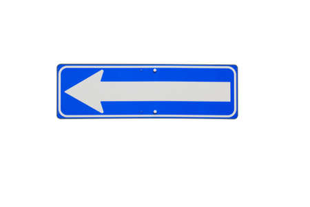 One way heading to left sign with blue sky
