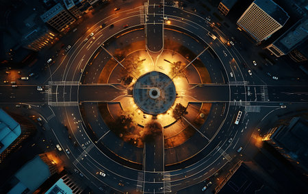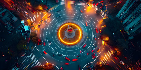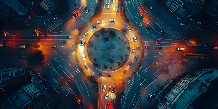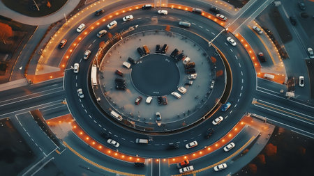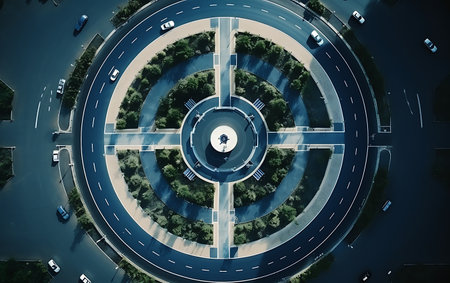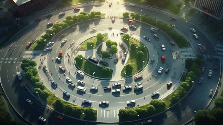 Top view of a road and a roundabout, showing the significance of the road network. GENERATE AI