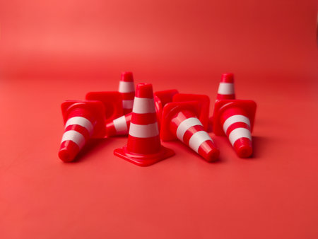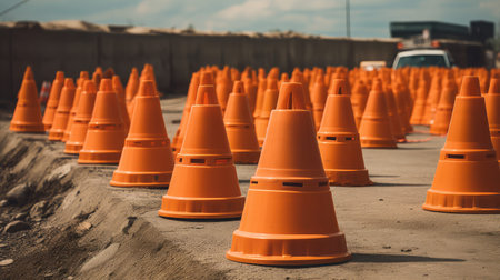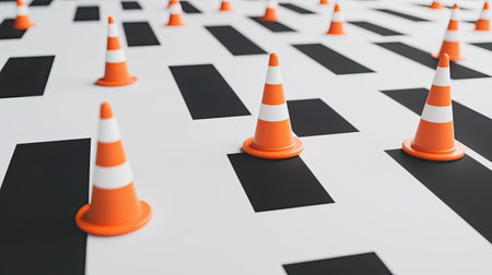 traffic cones in geometric pattern, creating unique background, created with generative ai