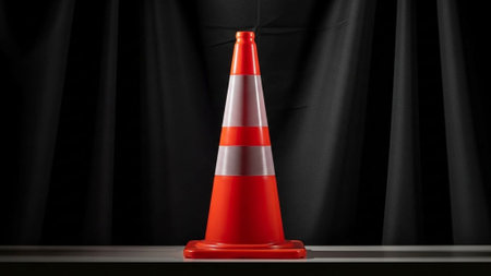 Single traffic cone on a clean, neutral backdrop, detailed close-up shot with plenty of copy space
