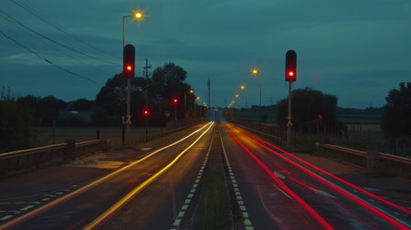 On a calm summer night a deserted rural crossing is momentarily transformed into a bustling hub of activity thanks to the vibrant car light trails passing through