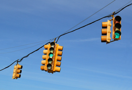 Blue sky with traffic lights