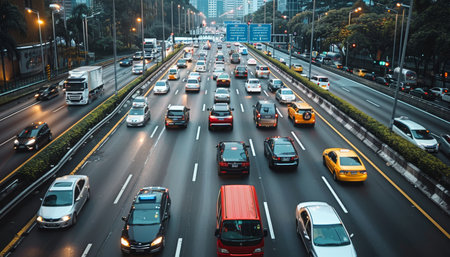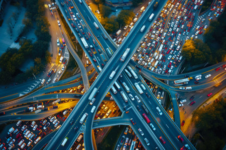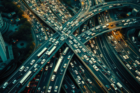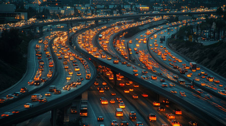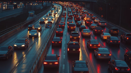 Navigating Urban Congestion: Witness the challenges of urban commuting with this striking image of a traffic jam on a city highway. Perfect for illustrating transportation issues and solutions