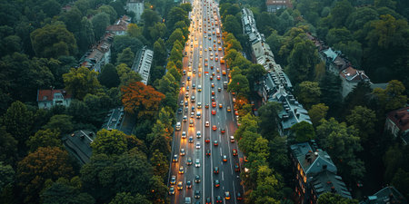 Eye-Catching Overhead View of Busy Traffic on a Modern City Highway - Ideal for Transportation Blogs