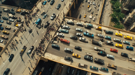 Eye-Catching Overhead View of Busy Traffic on a Modern City Highway - Ideal for Transportation Blogs