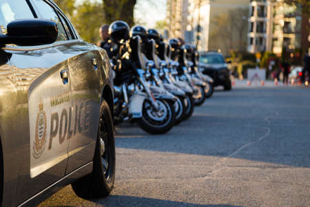 VANCOUVER, BC, CANADA - APR 20, 2019: VPD motorcycles and patrol vehicles at the 420 festival in Vancouver.