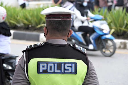 Kolaka, Indonesia - September 16, 2021: A police officer on duty