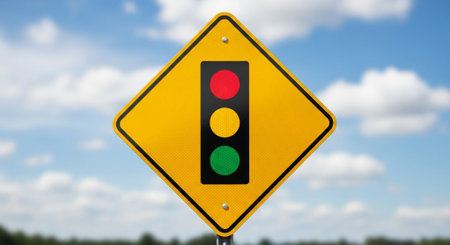 A traffic light with a red, yellow and green signal, AI