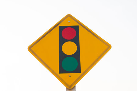 Temporary traffic control lights and triangle building site traffic sign