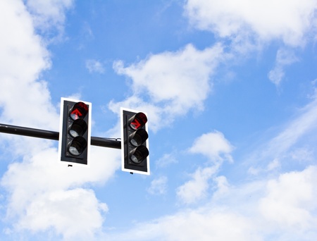 Traffic lighs isolated on blue sky and some clouds