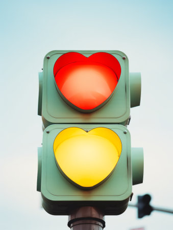 Red light on traffic lights, love shape. Akureyri town, Iceland
