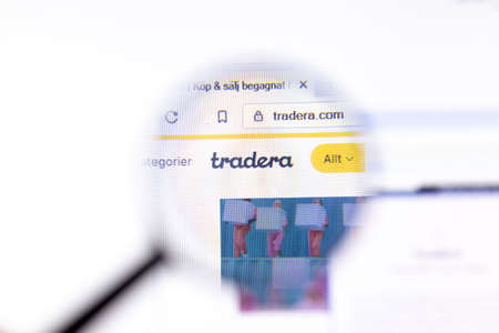 Los Angeles, California, USA - 18.02.2020: Tradera website page with close up logo. Tradera.com site icon on screen, Illustrative Editorial.