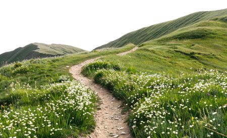 Summer landscape with trail in mountains isolated on white background