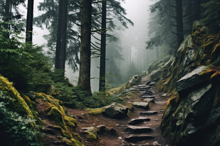 Mysterious hiking trail in the mountains