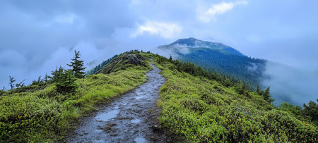 Mysterious hiking trail in the mountains