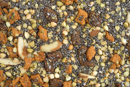 Nuts, seeds and dried fruits as a background. flat lay. top view. pattern