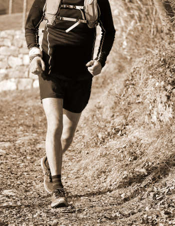 Running and hiking in the mountains. Speed hiking